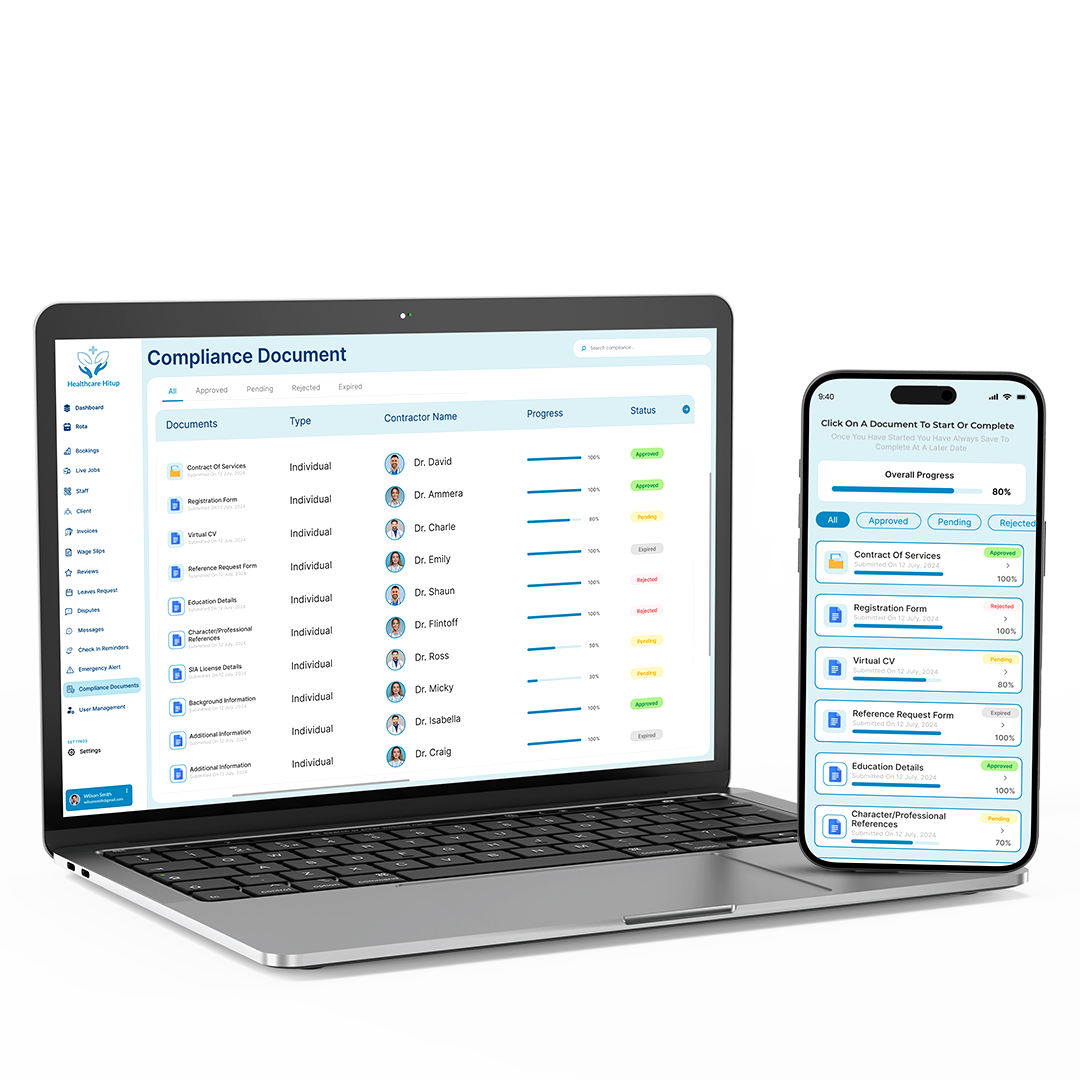 Simplify your operations on the go with the Admin App. Whether you're approving shifts, managing compliance, or resolving disputes, everything is easily accessible from your mobile device. Create dynamic bookings, manage job applications, and oversee shift coverage in real-time, all from one intuitive app. With full control at your fingertips, the Admin App ensures smooth, efficient operations, wherever you are.