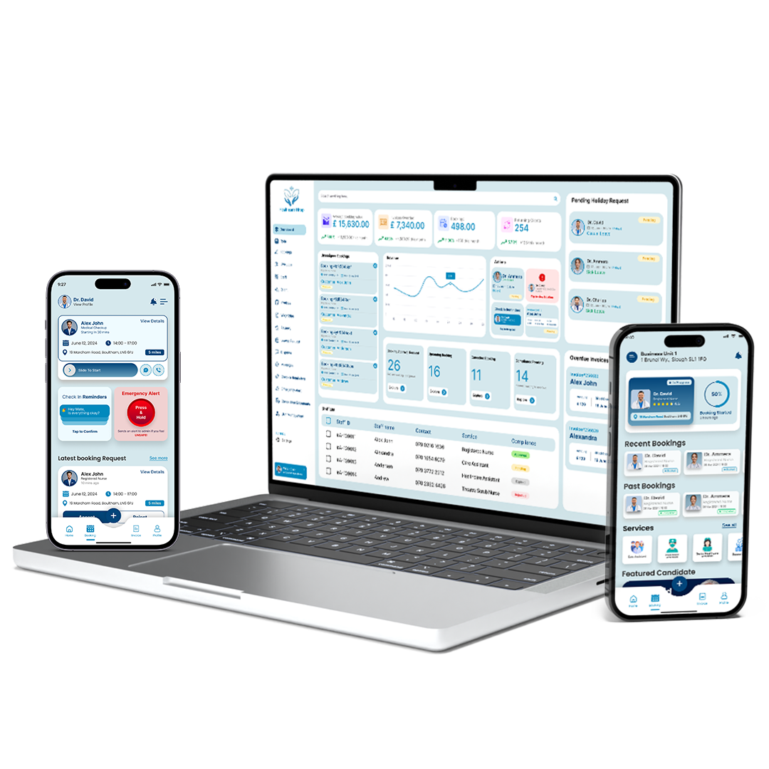 Our solution, designed specifically for care providers, integrates custom Apps and an Admin Panel to streamline staffing, compliance, and operations—ensuring full GDPR compliance. Tailored to your business needs and fully owned by you, the system puts you in control, allowing you to focus on delivering quality care.